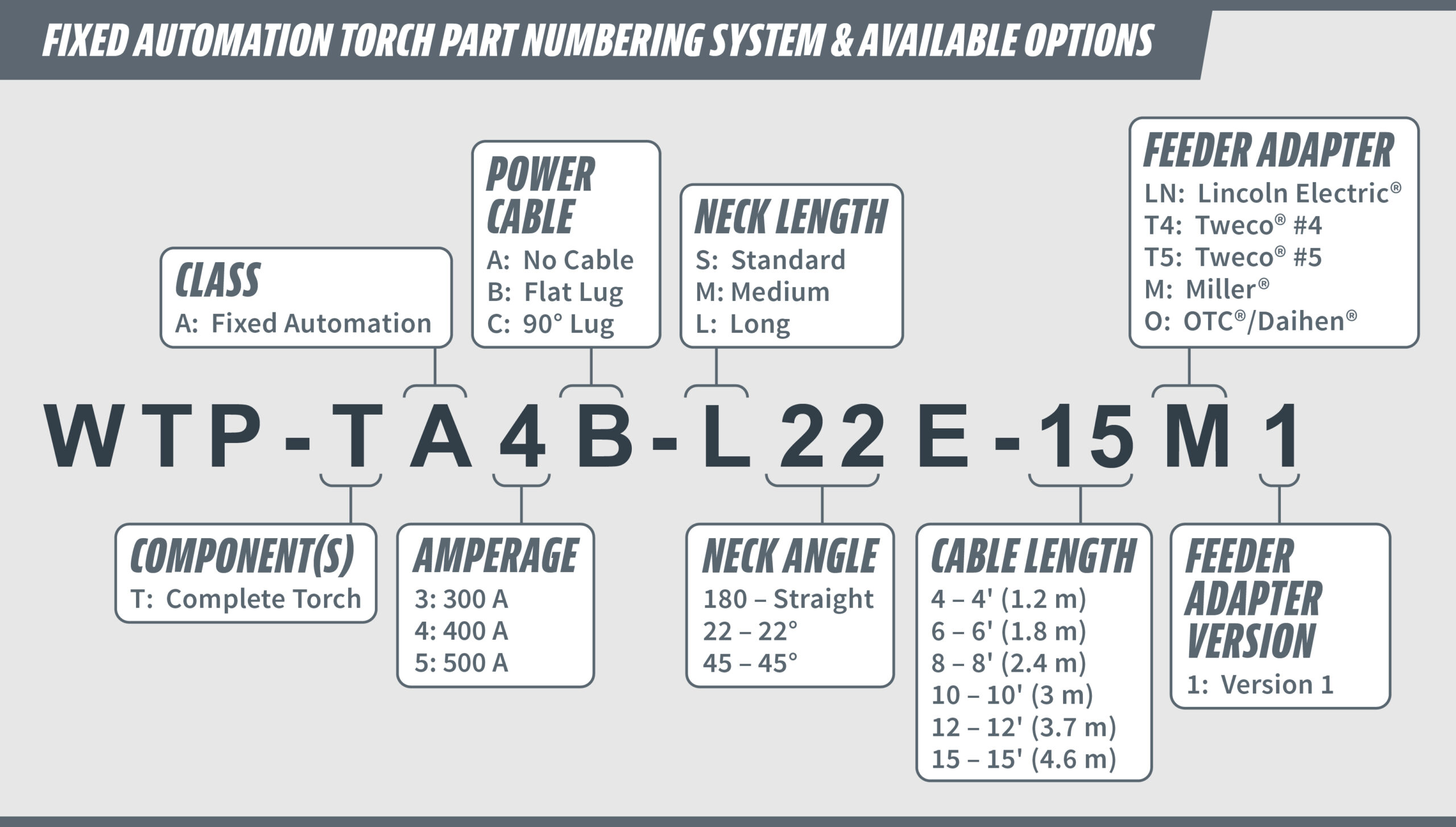 Configure your fixed automation welding torch from the available options. All new PowerBall® MIG Torches for ship with the following standard options unless otherwise noted when ordering: